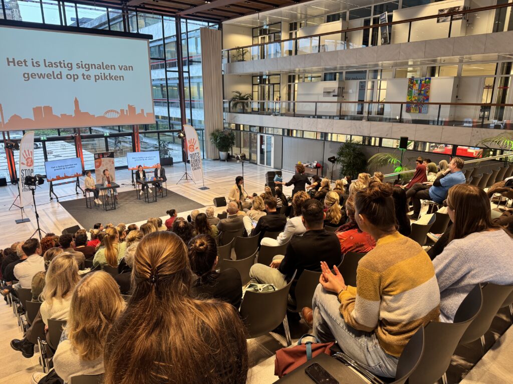 Verschillende sprekers gaven vervolgens een inhoudelijke bijdrage. Nicole van Gelder vertelde wat onderzoek laat zien over ex-partnergeweld en welke lessen daaruit te trekken zijn. Rachid Berragiy ging in op multicultureel vakmanschap en de waarde van cultureel sensitief werken. Bayram Varli besprak de samenhang tussen huiselijk geweld en eergerelateerd geweld en lichtte toe waarom het belangrijk is om rekening te houden met culturele verschillen én veiligheid. Tijdens een panelgesprek deelden deskundigen vanuit wetenschap, hulpverlening en bestuur hun inzichten over de aanpak van femicide. Zij benadrukten dat femicide vaak het eindpunt is van een langere periode van controle, isolatie en geweld en bespraken wat er nodig is voor betere signalering en bescherming. Aan het einde van het programma konden deelnemers tijdens de sessie ‘Achter de voordeur’ ervaren hoe complex een situatie van huiselijk geweld kan zijn. De bijeenkomst werd afgesloten met een spoken-wordoptreden van Malika El Mouridi, gevolgd door een lunch.